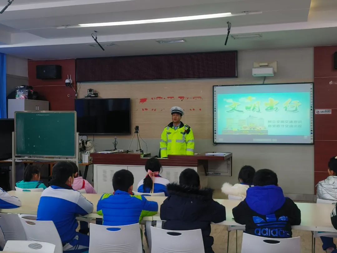 活动中,民警结合辖区典型交通事故案例给广大师生讲解了车辆的盲区、安全过马路、安全乘坐车辆、交通标志标线、交通安全知识,提醒广大学生在上下学时要自觉遵守交通法律法规,不在马路上打闹、嬉戏,不翻越交通隔离护栏,不乘坐农用车、无牌无证等车辆,安全有序乘坐公共汽车。最后,向同学们提出当好交通安全宣传员的倡议,把学到的交通安全知识带回家,在日常的出行活动中,监督自己的家人遵守交通法规,通过“小手”拉“大手”,共同营造良好的交通安全环境。