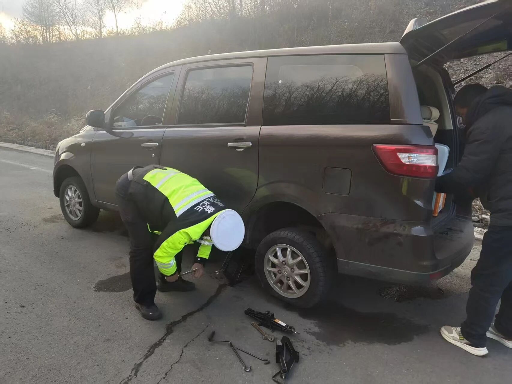近期,安图林区迎来雨雪天气,给群众出行和道路交通安全带来风险挑战,省公安厅森林公安局安图森林公安分局交通管理大队及时加大巡逻力度和密度,切实提高街面见警率和管事率,为林区群众出行安全保驾护航。11月10日,民警摇身一变客串“修车师傅”及时救援路边抛锚车辆,深受赞扬。