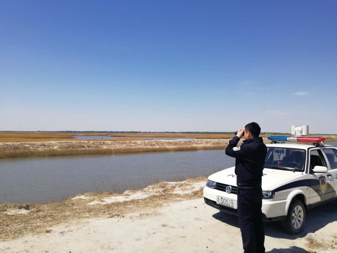 莫莫格森林公安分局与野生动物保护协会、地方民兵志愿者开展联合护飞行动,并利用4G图传巡逻车、超高空无人机、进口夜视仪、高倍望远镜等开展巡护工作,实时监测白鹤的迁徙情况,保护其不被不法分子猎捕和杀害,同时向附近村民展开普法宣传,提升群众保护白鹤意识,号召其共同参与到保护野生动物中来。
