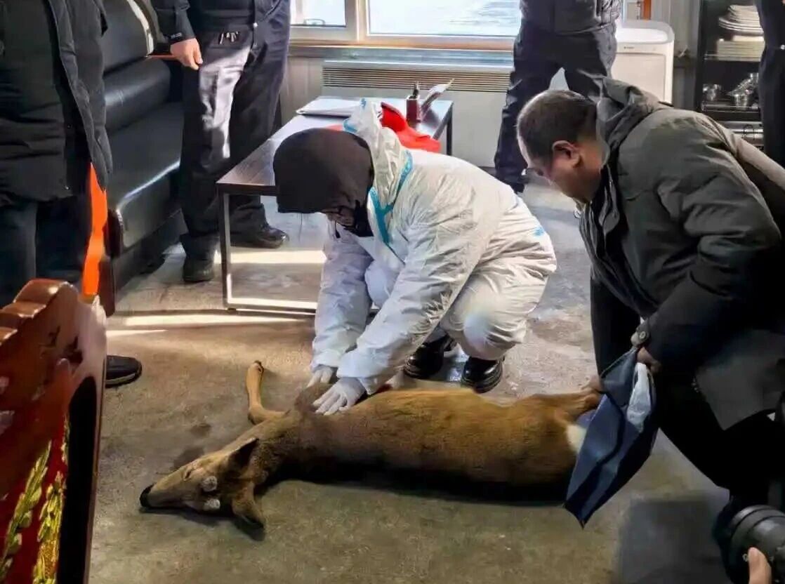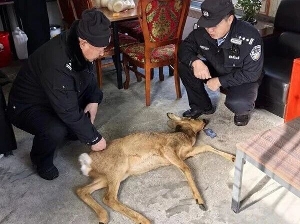 1月11日上午,省公安厅森林公安局汪清森林公安分局青松森林派出所民警接到辖区群众报警,称在天桥岭镇矿泉水厂山坡上发现一只野生狍子受伤蜷缩在雪地上,请求民警帮助。